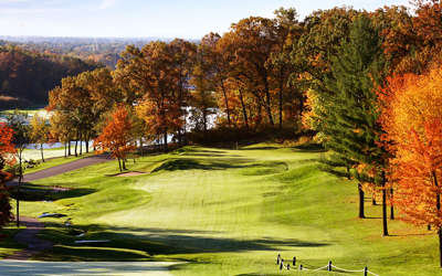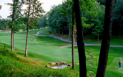 One of three great finishing holes; long and narrow flanked by oak and pine trees. The slight dogleg right requires a left to right or straight shot from the tee. An ample sized green is guarded by bunkers front and left.