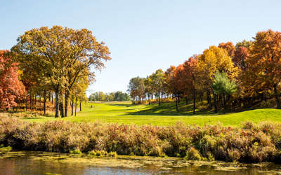 A classic three shot par 5 for most golfers. Longer hitters may choose to drive over the corner of Mystic Lake on the right. Green is guarded by stream left and front.